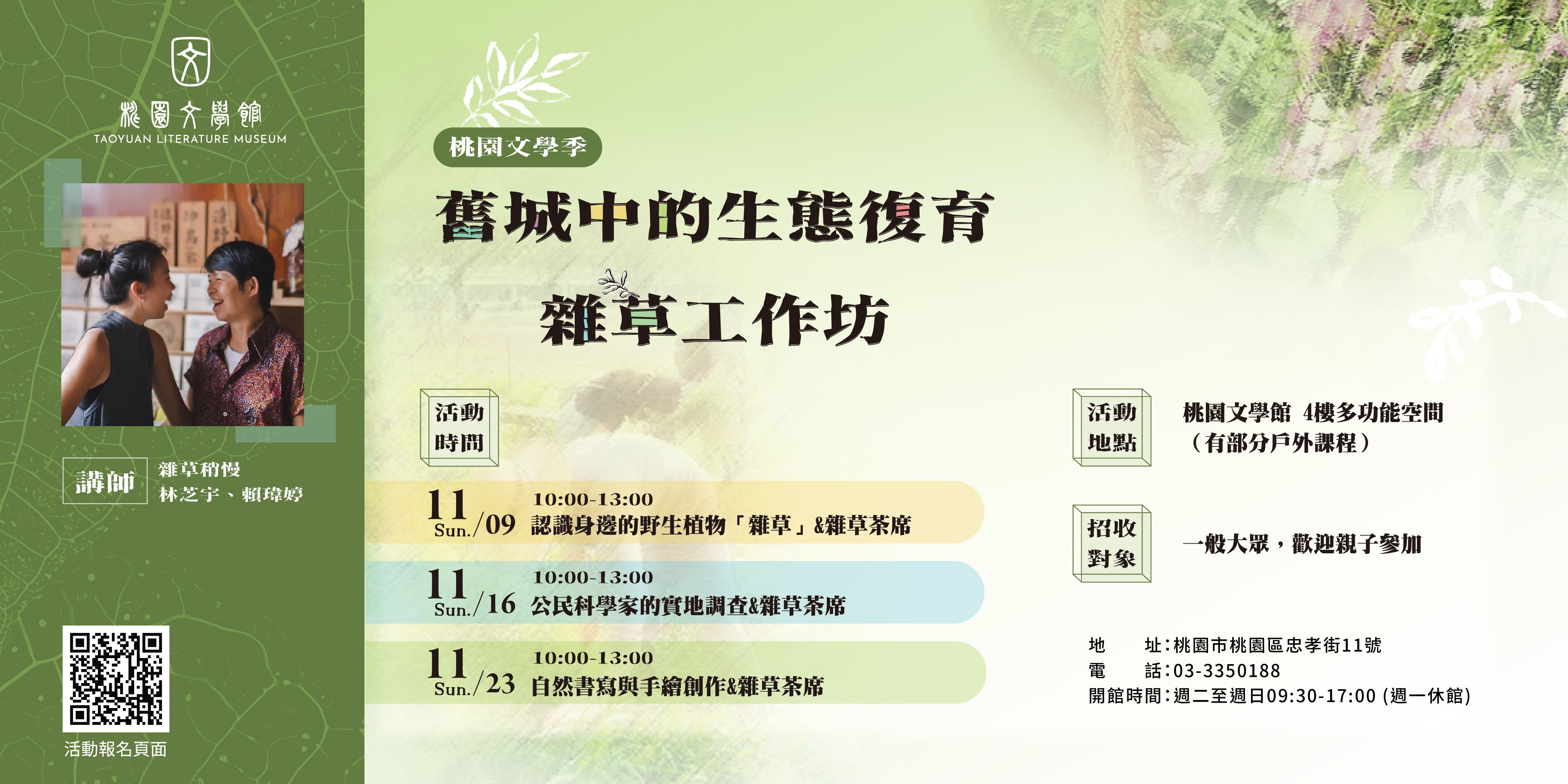 這三個週日,一起來桃園文學館,當雜草的朋友吧!