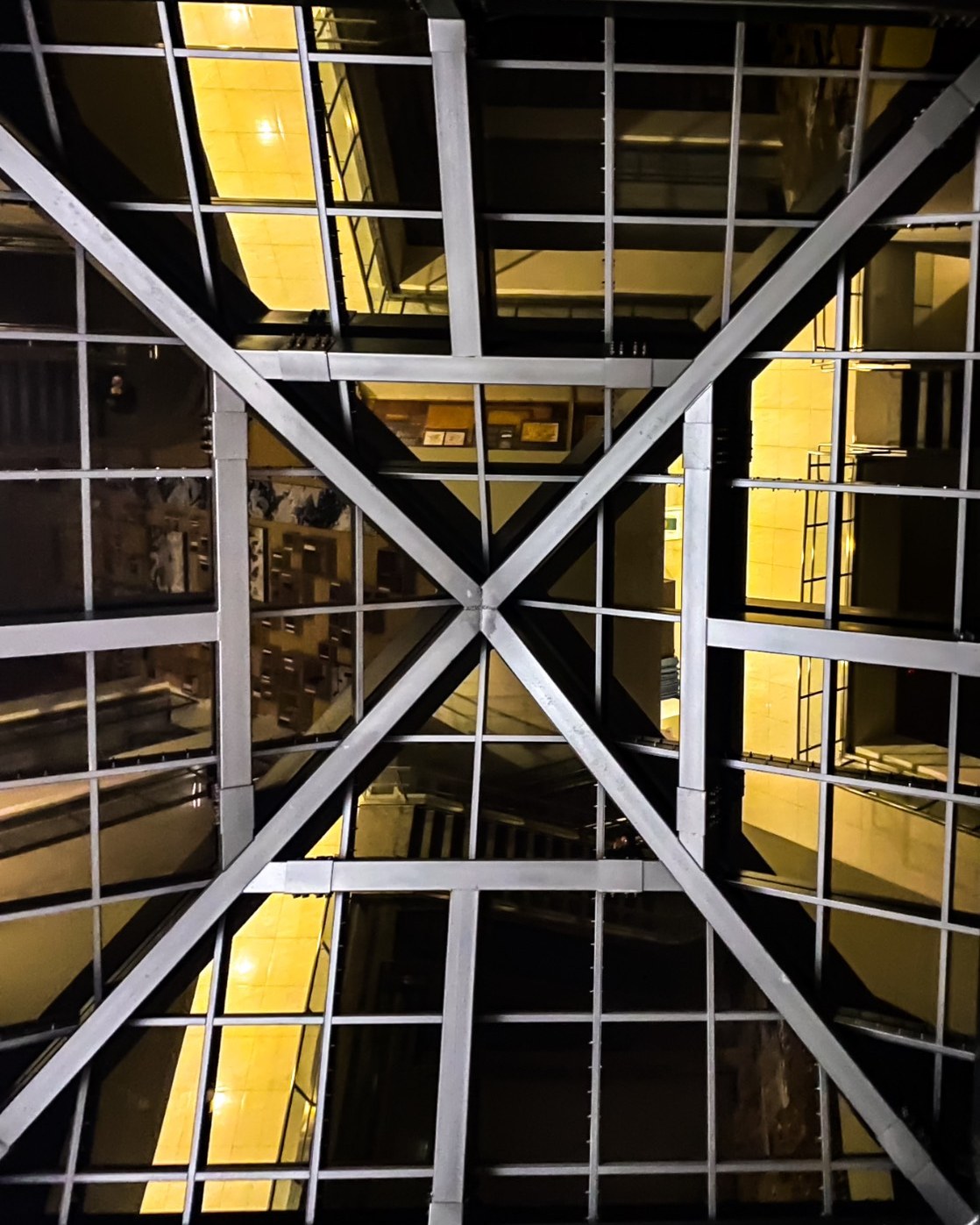 晴日裡,光線如水般自高處坦率傾瀉;陰雨時天幕低垂,從空中映下的色相轉冷,天井成為時間的顯影室,把流轉的氣候、雲影與微風,沖洗成館內最隱微的風景。