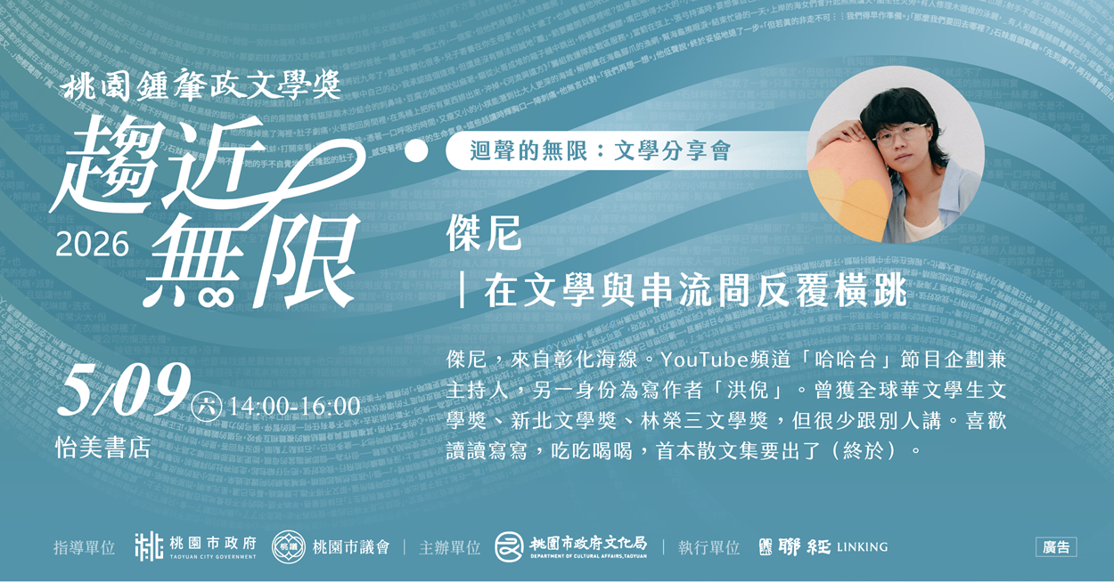 2026桃園鍾肇政文學獎推廣活動「傑尼 • 在文學與串流間反覆橫跳 」