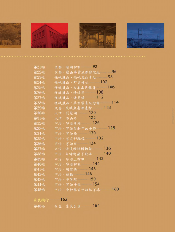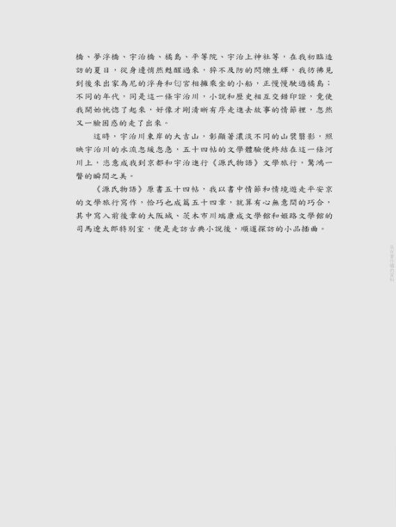 在熱鬧的京都和宇治街頭,尋訪《源氏物語》發生的地景,野宮神社、宇治神社、平等院、渡月橋…..等,彷彿看到平安時期以男主角光源氏為中心所展開的宮廷權鬥、貴族男女的愛戀情仇正一幕幕的上演,讓人在虛實對立的心靈觸動中,跌進古典小說的幻境裡。