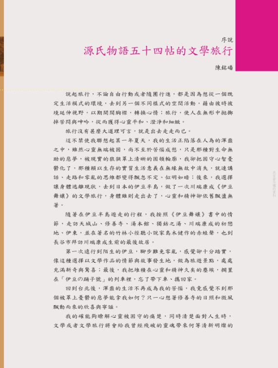 源氏物語乃日本古典名著之一。陳銘磻老師啟開了接近經典的另一種方法,用文學旅行的角度,帶你走進時光隧道重見平安時代的日本榮景,了解日本王朝美學。